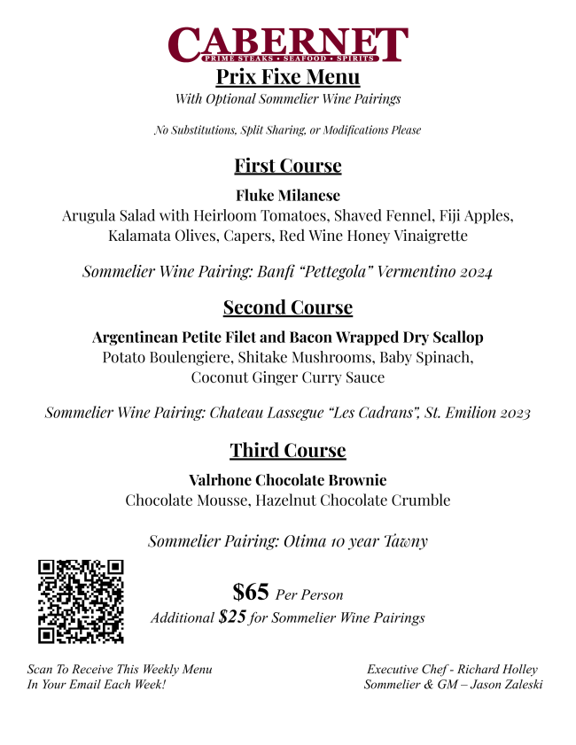 Cabernet is the place to be all week long! Reservations are Encouraged!Book A Reservation!