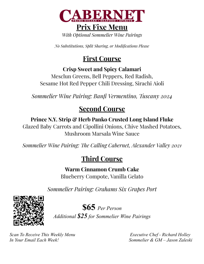 For $50 per person—which includes all taxes and gratuity—guests will enjoy a curated three-course Prix Fixe Menu!